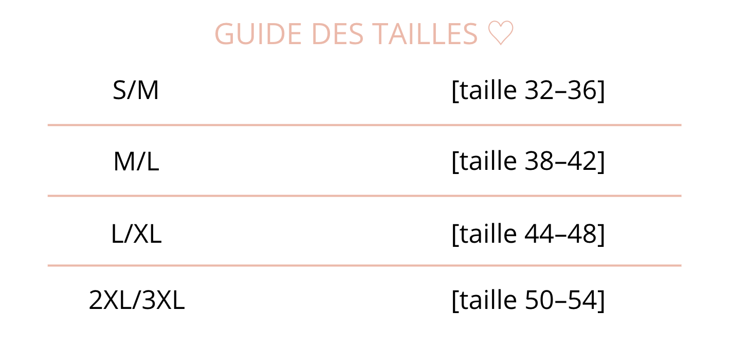 Les échanges de taille sont gratuits ! Il vous suffit de contacter notre service client dans les 14 jours suivant la réception.
