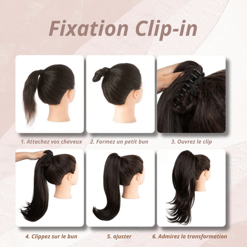 Cheveux fins, épais, lisses ou ondulés : tant que vous pouvez faire une petite queue, la ponytail se fixe parfaitement.