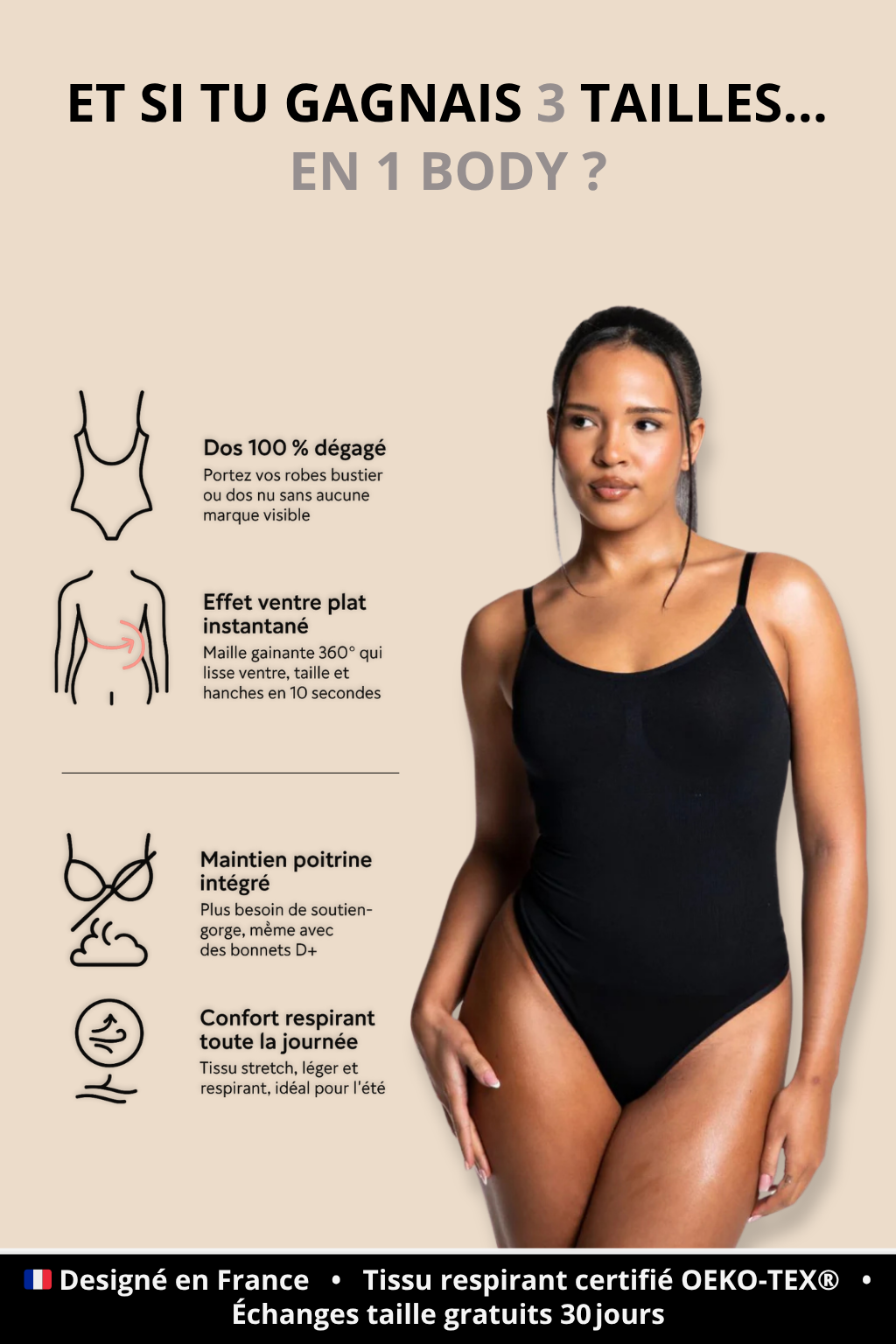 Le Body SculptX™ ne se contente pas de “gommer” : il redessine ta taille, soutient ta poitrine et te laisse respirer, le tout en moins de 10 secondes.